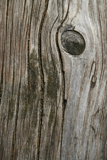 Das Bild zeigt eine detaillierte Nahaufnahme einer Baumrinde. Die Rinde ist von einer groben Textur geprägt, mit tiefen Rissen und Furchen, die einen interessanten Kontrast bilden. Ein großer, kreisrunder Aussatz ist prominent in der Mitte des Bildes zu sehen, der die natürliche Form und Struktur des Baumes hervorhebt. Die Farbgebung ist überwiegend in Sepiatönen gehalten, was dem Bild eine warme, nostalgische Atmosphäre verleiht. Die Textur des Holzes ist sehr detailliert und zeigt die natürliche Maserung und Beschaffenheit des Materials. Das Bild wirkt rustikal und authentisch und fängt die Schönheit der Natur ein.